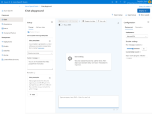 Azure OpenAI Studio is een webgebaseerde interface die directe interactie met de Azure OpenAI-dienst mogelijk maakt. Dit platform is speciaal ontworpen om te experimenteren met de mogelijkheden van OpenAI, waaronder ChatGPT, GPT-3.5 Turbo, GPT-4-modellen en zelfs DALL-E voor het genereren van unieke afbeeldingen op basis van beschrijvende input. Het biedt diverse functionaliteiten zoals een chat-omgeving voor het bouwen van op maat gemaakte AI-assistenten, completion-modellen voor contentgeneratie en Whisper-modellen voor spraak-naar-tekst-transcriptie. Azure OpenAI Studio legt de nadruk op gebruiksvriendelijkheid bij het experimenteren met verschillende modellen en is daardoor ideaal voor het genereren van tekstsuggesties, de ontwikkeling van AI-assistenten en het verkennen van AI-potentieel, zonder dat er uitgebreide programmeer- of AI-kennis nodig is.